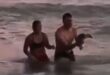 Monte Hermoso: indignación por una pareja que sacó a un pingüino del mar para tomarse fotos