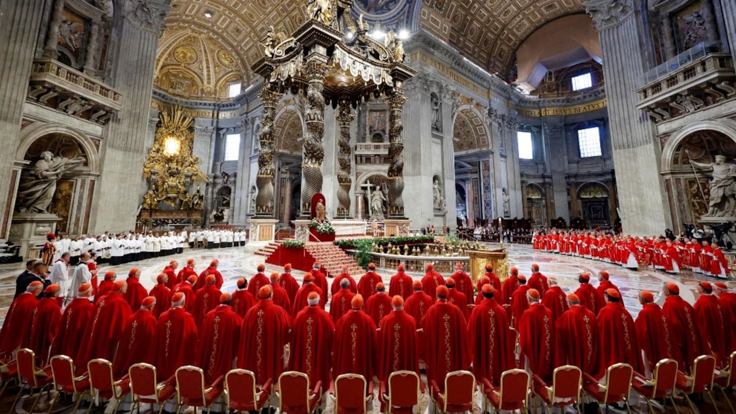 Cardenales asisten a una misa en memoria del difunto Papa Francisco en la Basílica de San Pedro, Ciudad del Vaticano .