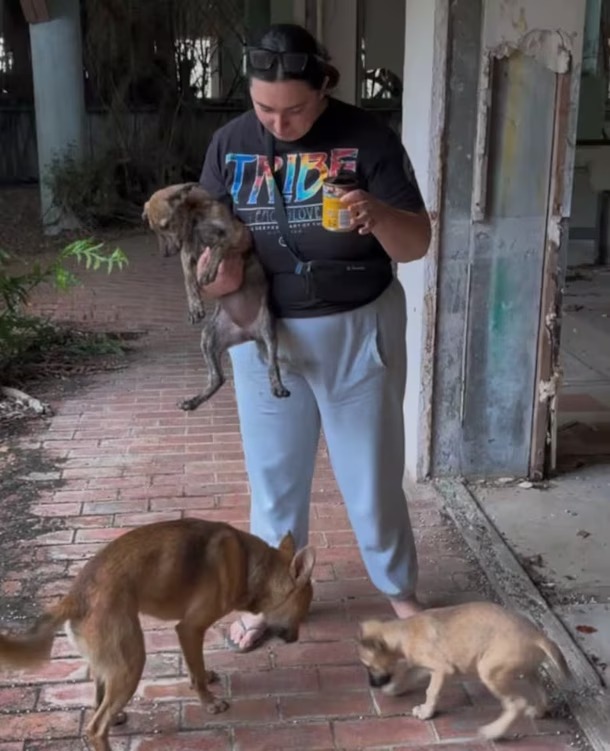 Una de esas llamadas llevó a las hermanas Keilbach al shopping derruido en el que encontraron a los dos cachorros y a Kai, que es como le pusieron al macho que los cuidaba y que empezó a seguirlas cuando las vio llevárselos.