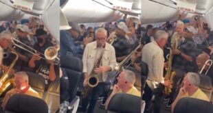 VER MAS...Un avión llevaba retraso y un grupo de jazz improvisó un increíble concierto a bordo