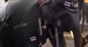 En redes sociales se ha viralizado un video que muestra a un elefante desfilando por una calle en Tailandia, portando un casco, un arma automática y con un jinete montado. Filmaron a un elefante armado y con casco en una marcha El animal luce un uniforme decorado con la bandera …