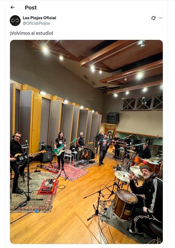 Después de llenar estadios por todo el país en una gira histórica que marcó su retorno a los escenarios, Los Piojos sorprendieron este martes con una publicación que podría significar el comienzo de una nueva etapa para la banda: una foto grupal en un estudio de grabación, acompañada por la frase «Volvimos al estudio».