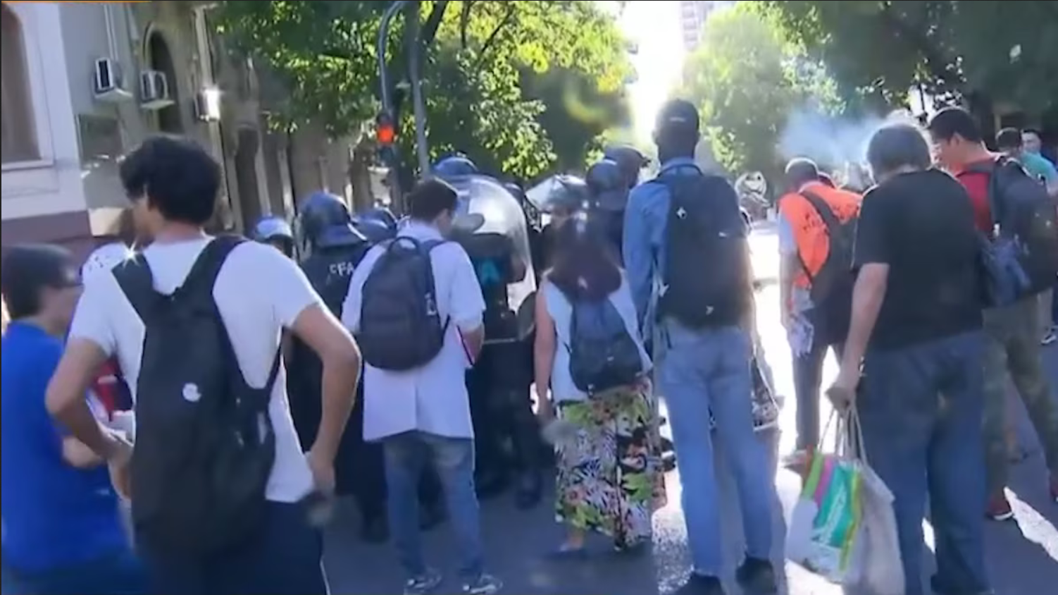 Según pudo saber Infobae, además de los jubilados afectados por los gases lacrimógenos, hubo al menos dos policías heridos. También se informaron dos personas demoradas por los incidentes.